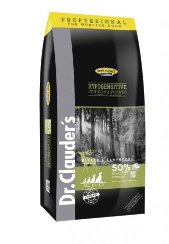 Dr. Clauder's Best Choice Hyposensitive Szarvashússal és burgonyával teljes értékű száraz eledel táplálékérzékenységben szenvedő, csökkent étvágyú felnőtt kutyák részére. Búzamentes termék.Az olyan tényezők, mint a különösen magas emészthetőség és az allergéncsökkentés csak egy állati és egy növényi fehérjeforrás miatt megkülönböztetik ezt a terméket. A Dr.Clauder Pro Digest Komplex az összetevőinek hatására elősegítheti az ételek felhasználását, támogatja az immunrendszert és stabilizálja az emésztőrendszert. A gabonamentes - kiegyensúlyozott fehérje / energia arány - telítetlen zsírsavak (omega) a halolajból. Magas szintű élelmezés-felhasználás, - FOS-t tartalmaz, - búzamentes, - nem tartalmaz tartósítószert.Összetétel: burgonyaliszt 49%, szarvasmarhahús (dehidrált) 15%, sovány hús és belsőség a szarvasmarhafélékből 5%, burgonyafehérje, répapép (redukált cukor), baromfizsír, hidrolizált fehérje, lenmag, élesztő, (dehidrált, beleértve a. 0,05% glükánok), halolaj, cikóriapor 1%, Dr.Clauder`s Digest 5 Complex (papayapor, fructo oligo szacharidok, áfonyalé, ananászpor, élesztő béta-glükán, kenderliszt, spirulinapor) 0,75%, nátrium-klorid , sáfrányolaj.Analitikai alkotóelemek: nyersfehérje 21%, nyers zsír 11%, nyersrost 3%, nyershamu 8,3%, kalcium 1,9%, foszfor 1,15%.Adalékanyagok / kg: Táplálkozási adalékok: A-vitaminok 12 000 NE, D3 - 1 200 NE, E 70 mg, B1 7 mg, B2 7 mg, B6 5 mg, B12 50 mg, C 90 mg, biotin 400 mg, fólát 2 mg, niacin 30 mg, pantoténsav 18 mg, kolin-klorid 1450 mg, réz (réz formájában) szulfát) 10 mg, cink (cink-szulfát formájában, monohidrátként) 30 mg, jód (kalcium-jódként, vízmentes) 2 mg, szelén (nátrium-szelenitként) 0,2 mg.Technológiai adalékok: antioxidánsokkal: EC adalékok (természetes eredetű tokoferolban gazdag kivonatok, propil-gallát).