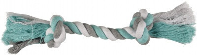 2 csomós rágókötél kutyák számára. Segít megelőzni a foglepedék kialakulását és masszírozza az fogínyt. Anyaga: Pamut Színe: Mentazöld - fehér - szürke Különböző méretekben kapható: - S: 22 cm (nettó súly: 70 g) - M: 30 cm (nettó súly: 120 g) - L: 35 cm (nettó súly: 180 g) - XL: 40 cm (nettó súly: 340 g) Kültéri és beltéri használatra egyaránt alkalmas.