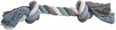 Pamut rágókötél 2 csomóval - játék kutyák számára - Kiválóan alkalmas húzó vonó játékra. - Kellemes tapintású, puha pamutból készült. - Segít megelőzni a foglepedéket és masszírozza az ínyt. - Kültéri és beltéri használatra egyaránt alkalmas. Mérete: 45 cm x 10 cm x 11.5 cm Súlya: 670 g Színe: Kék - fehér - szürke Anyaga: Pamut Figyelmeztetés: Nem gyermekjáték. 3 évesnél fiatalabb gyermektől elzárva tartandó! Játék közben mindig tartsa felügyelet alatt kedvencét és ne engedje, hogy sérült vagy törött játékkal tovább játsszon! Használat előtt távolítsa el a csomagolóanyagot!