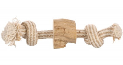 Kávéfából és kötélből készült játék kutyák számára. - A pamut kötélre felfűzött rágóbot kávéfából készült. - A kávéfa különösen kemény fa, ezért hosszan tartó szórakozást biztosít a kutyának. - A formája és speciális textúrája rágásra ösztönzi az állatot. - Egyedülálló illata és íze révén azonnal a kutya kedvenc játéka lesz. - Rágás során természetes módon tisztítja a kutya fogait, finom rostok válnak le a botról, segít megelőzni a fogkőképződést és erősíti a rágóizomzatot. - A fellazult rostok lenyelés esetén is teljesen ártalmatlanok, hiszen könnyen emészthetők. - 100 %-ban természetes, natúr termék, mesterséges alkotóelemeket nem tartalmaz. - Allergiás kutyáknak is javasolható. - Koffeinmentes. - Kültéri és beltéri használatra egyaránt alkalmas. Anyaga: Tartós kávéfa, pamut és juta keveréke Mérete: 22 cm x 4,5 cm x 4,5 cm Nettó tömege: 90 g Figyelmeztetés: Nem gyermekjáték. 3 évesnél fiatalabb gyermektől elzárva tartandó! Játék közben mindig tartsa felügyelet alatt kedvencét és ne engedje, hogy sérült vagy törött játékkal tovább játsszon! Használat előtt távolítsa el a csomagolóanyagot!