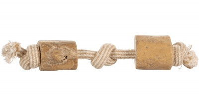 Kávéfából és kötélből készült játék kutyák számára. - A pamut kötélre felfűzött 2 db rágóbot kávéfából készült. - A kávéfa különösen kemény fa, ezért hosszan tartó szórakozást biztosít a kutyának. - A formája és speciális textúrája rágásra ösztönzi az állatot. - Egyedülálló illata és íze révén azonnal a kutya kedvenc játéka lesz. - Szilánkmentes. - Rágás során természetes módon tisztítja a kutya fogait, finom rostok válnak le a botról, segít megelőzni a fogkőképződést és erősíti a rágóizomzatot. - A fellazult rostok lenyelés esetén is teljesen ártalmatlanok, hiszen könnyen emészthetők. - 100 %-ban természetes, natúr termék, mesterséges alkotóelemeket nem tartalmaz. - Allergiás kutyáknak is javasolható. - Koffeinmentes. - Kültéri és beltéri használatra egyaránt alkalmas. Anyaga: Tartós kávéfa, pamut és juta keveréke Mérete: 32 cm x 5,5 cm x 5,5 cm Nettó tömege: 250 g Figyelmeztetés: Nem gyermekjáték. 3 évesnél fiatalabb gyermektől elzárva tartandó! Játék közben mindig tartsa felügyelet alatt kedvencét és ne engedje, hogy sérült vagy törött játékkal tovább játsszon! Használat előtt távolítsa el a csomagolóanyagot!