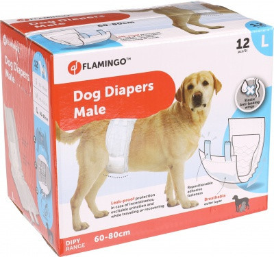 A pelenkák optimálisak felnőtt és kölyök kankutyák részére. Alkalmazható izgatott vagy inkontinens kutyáknál, de kölyökkutyáknál is, amíg még nem szobatiszták. A pelenkák tökéletes védelemnek bizonyulnak a kisebb balesetek megelőzésére, hosszabb utazás vagy műtét után. Jellemzők: - Tökéletes védelem a nagyfokú nedvszívó képességnek köszönhetően - Ideális inkontinenciaproblémák esetén vagy műtét után - Kényelmes illeszkedés az elasztikus derékpántnak köszönhetően - Ragasztóval ellátott a könnyű zárás érdekében - Légáteresztő - Puha párnázással - Kan kutyusok számára kifejlesztett Méretek (derékméret): - S: 30-46 cm - M: 46-60 cm - L: 60-80 cm
