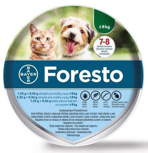 A bolhák elleni hatékonysága a nyakörv felhelyezése után azonnal megkezdődik. Megakadályozza az állat közvetlen környezetében a bolhalárvák fejlődését 8 hónapig. A Foresto használható a bolhacsípés okozta allergiás bőrgyulladás (FAD) gyógykezelés stratégiájának részeként.