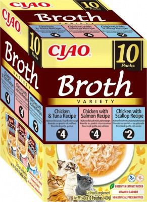 Inaba Cat Broth Variety - csirke-lazac, csirke-tonhal, csirke-fésűkagyló 10 x 40 g