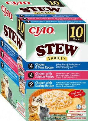 Inaba Cat Stew Variety - csirke-tonhal, csirke-lazac, csirke-fésűkagyló 10 x 40 g