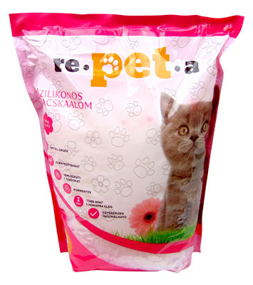 Kiváló minőségű szilikonos macskaalom, kellemes virág illattal. Előnyök: - Egy zacskó Repeta szilikonos macskaalom több mint egy hónapig elegendő - Teljesen szagtalan marad használat közben is, mivel semlegesíti a kellemetlen szagokat - 100% - ig környezetbarát, nem mérgező - A speciális, szögletes forma megakadályozza a szemek szétszóródását - Kristály szerkezete miatt nem tapad fel az állat szőrére - Ez a pormentes és antiallergén macskaalom nem irritálja sem az Ön, sem a kedvence szemét és orrát - A szilikon kristályok tökéletesen megkötik a nedvességet, szárazon tartva ezzel az almot Használati tanácsok: - Az alomtálcát kb. 3-4 cm vastagon töltse fel a Repeta szilikonos macskaalommal - A legelső használatkor fontos, hogy az állat megszokja az új almot, ezért ajánlatos összekeverni a régivel - Alomlapáttal a darabos ürüléket rendszeresen távolítsa el, és az almot bizonyos időközönként teljes egészében forgassa át! - A kristályok hatékonysága nem csökken elszíneződés esetén sem - Ajánlatos a tálcát száraz, meleg helyre tenni, mert ez nagyban megnöveli a szilikon nedvszívó képességét - Az elhasznált kristályokat nyugodtan el lehet ásni, mert 100% - ig lebomlanak, de ajánlatos a fáktól, növényektől legalább 1-1,5 m távolságot tartani - Ha az almot több állat is használja mindenképpen ajánlatos gyakrabban cserélni