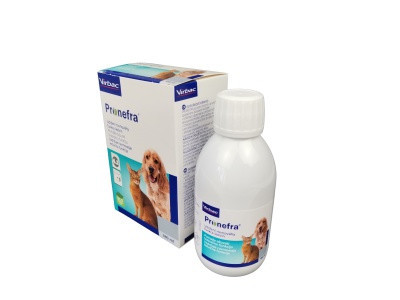 Ízesített szájon át adandó szuszpenzió macskáknak és kuytáknak. Kiegészítő takarmány a megfelelő vesefunkció fenntartásáért.LEÍRÁS:A PRONEFRA® macskák és kutyák megfelelő vesefunkciójának fenntartására használható.A PRONEFRA® nagyon ízletes és az 4 komponens összhangján alapul:- A kálcium-karbonát és a magnézium-karbonát csökkenti a foszfor elérhetőségét a szervezet számára a bélben való megkötés révén.- A kitozánról ismert, hogy megköti az urémiás méreganyagokat a bélben.- A tengeri oligopeptidek hozzájárulnak a megfelelő vérnyomás fenntartásához.ÖSSZETÉTEL:Finomított növényi olajok (oliva és kopra), hús és állati származékok (baromfi), kálcium-karbonát (3,6 %), hal fehérje hidrolizátum (1,9 %), magnézium-karbonát (1,0 %), kitozán (1,0 %).ADALÉKANYAGOK KILOGRAMONKÉNT: Technológiai adalékok: Polioxietilén (20)-szorbitán monooleát: 4900 mgFELHASZNÁLÁSI UTASÍTÁS:Használat előtt jól fel kell rázni. Kis üledékképződés normális jelenség. Adagoljon naponta kétszer a táplálékba keverve vagy etetés közben az adagolófecskendőből a termékből (macska: 1 ml/4 kg naponta kétszer, kutya: 1 ml/5 kg naponta kétszer). Víz álljon mindig az állat rendelkezésére. Az ajánlott adagot ne lépje túl. Alkalmazás előtt kérje állatorvosa tanácsát. A Pronefra nem biztos, hogy megfelelő idősebb állatoknak vagy speciális emésztőszervi érzékenység miatt kezelés alatt álló állatoknak.Ha az állat öklendezik, ajánlott óvatosan adagolni a terméket és pár napig a javasolt dózist csökkenteni, ha az öklendezés továbbra is fennáll konzultáljon állatorvosával.TÁROLÁS:Száraz, hűvös helyen tárolandó, felbontás után is. Az első felbontás után a 60 ml-es kiszerelés 2 hónapon belül, a 180 ml-es kiszerelés 6 hónapon belül felhasználandó.TANÁCSOK A HELYES BEADÁSHOZ:1: Használat előtt jól fel kell rázni.2: Csavarja le a fehér kupakot, hogy kinyissa a flakont.3: Csavarja rá a kupakot a flakonra.4: Tartsa a flakont függőleges helyzetben és nyissa ki a kupakot5: Helyezze bele az adagoló fecskendőt.6: Fordítsa meg a palackot és az adagoló fecskendő duggattyúját húzza kifelé, hogy termék kerüljön a fecskendőbe. Az állat súlyának megfelelő mennyiségű termékkel töltse meg a fecskendőt.7: Állítsa vissza függőleges helyzetbe a flakont és kissé mozgatva húzza ki az adagoló fecskendőt a kupakból. Zárja le a kupakot.8: Óvatosan nyomja ki a terméket az adagoló fecskendőből és keverje össze a terméket az állat eledelével. 8bis: Vagy helyezze az adagoló fecskendőt az állat szájába és óvatosan nyomja bele a terméket. Győződjön meg róla, hogy az állat lenyelte a terméket.9: A kupakot mindig tartsa zárva a flakonon. Használat után tiszta vízzel mossa ki az adagoló fecskendőt.