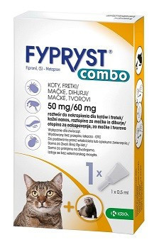 Fypryst Combo Macskáknak és VadászgörényeknekBolha, Kullancs Írtó CseppHatóanyagai bolhák, kullancsok és atkákkal szemben ad védettséget, a veszélyes betegségek hordozóival minden fázisban (tojás és lárvák) kifejti hatását.Fypryst Combo Spot-on tulajdonságai:A 8 hetesnél fiatalabb kölykök vagy 1 kg-nál kisebb súlyú macskák kezelése tilos. Nem alkalmazható 6 hónaposnál fiatalabb vadászgörényeken. A túladagolás összetételében használt anyagok iránti érzékenységük miatt. Kerülje az érintkezést az állat nyálkahártyájával. Kombinált csepegtető oldat a bolhafertőzés ellen 2 hónapig, a kullancsok ellen akár 4 hétig. Ne alkalmazza a beteg állatokra (pl. Szisztémás betegségek, láz), vagy a lábadozó állatokon.A Fypryst Combo Spot-on alkalmazása:Helyezzen arra a helyre, ahol a macska vagy a vadászgörény nem nyalogathat (a legjobb hely a nyakszirt ). Az alkalmazást követően legalább 48 óráig védje meg az állatot a víztől. Samponozás az alkalmazás előtt és az ismételt samponozás 5 héten keresztül csökkenti a hatékonyságot. A termék tenyésztő, terhes és szoptató macskák esetében biztonságos, vadászgörények esetében nem bizonyított.Fypryst Combo Spot-on Felhasználása:Távolítsa el és tartsa függőlegesen a pipettát.Mozgatással távolítsa el a kupakot.Forgassa el a sapkát és helyezze a pipettával ellentétes végével. Nyomja meg a sapkát a pipetta tömítésének összenyomásához. Ezután távolítsa el.Hajtsa ki az állat bundáját a nyakszirten, hogy ellenőrizze a bőrt.Helyezze a pipetta csúcsát a bőrre, és többször nyomja meg.