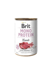 BÁRÁNYBÓL NYERT 100% TISZTA PROTEIN A Brit Mono Protein komplett és kiegyensúlyozott tápanyagot biztosít. A receptúra csak egyetlen fajta proteint tartalmaz, alkalmas a túlérzékenység és az élelmiszer intolerancia kockázatának csökkentésére. Teljes értékű állateledel felnőtt kutyák számára.Összetétel:76% bárány (bárányhús, tüdő, máj, szív), 23% húslé, 1% ásványi anyag.analitikai alkotóelemek:nyersfehérje 10,0%, zsírtartalom 7,0%, nyershamu 3,0%, nedvesség 80,0%, nyersrost 0,3%.Tápanyag összetétele:D3-vitamin (E671) 250 IU, E-vitamin (3a700) 100 mg, cink (3b606) 15 mg, vas (E1) 10 mg, mangán (E5) 3 mg, jód (3b201) 0,75 mg, réz (E4) 0,5 mg, biotin (3a880) 0,2 mg.Etetési útmutató:Dog size (kg) Small (1-10kg) Medium (10-25kg) Large (25 - 45kg)Daily amount 100-400g 400g-800g 800-1200g
