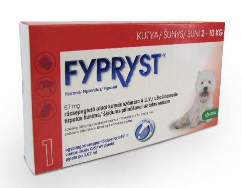 Fypryst rácsepegtető oldat kistestű (2 - 10 kg kg közötti) kutyák részére.Kutyák bolha, kullancs vagy szőrtetvesség okozta fertőzésének megelőzésére és gyógykezelésére.
