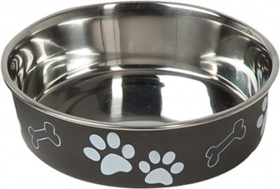 Kutyák részére kialakított mintás fémtál peremmel - Rozsdamentes - A tál mosogatógépben mosható (a gumigyűrű nem) - Az alján lévő csúszásgátló gumigyűrű könnyedén eltávolítható, így egyszerű a tál tisztítása - Elérhető méretek (átmérő felül/magasság/átmérő a talpnál/űrtartalom): * 12 cm /4,5 cm / 10 cm / 300 ml * 14 cm / 5 cm / 12 cm / 450 ml * 17 cm / 5,5 cm / 15 cm / 800 ml * 21 cm / 6,5 cm / 19 cm / 1500 ml * 23 cm / 8 cm / 1 cm / 2200 ml