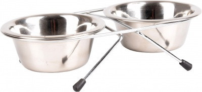 Rozsdamentes etető- és itatótálak állvánnyal kutyák számára - 2 db etető- és itatótál egy állványban. - A tálakat ki lehet venni az állványból. - Az állvány csúszásmentes. - Könnyen tisztítható, a tálak mosogatógépben is moshatóak. - Kültéri és beltéri használatra egyaránt alkalmas. Mérete: Többféle méretben kapható: 24 cm x 14,5 cm x 5 cm - 2 x 220 ml - ∅ 11 cm 29 cm x 14 cm x 6,5 cm - 2 x 380 ml - ∅ 13 cm 34,5 cm x 17 cm x 7 cm - 2 x 800 ml - ∅ 16 cm 45 cm x 21,5 cm x 9 cm - 2 x 1600 m - ∅ 21 cm Anyaga: Inox (rozsdamentes acél)