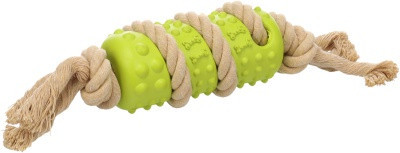 Gumiból és kötélből készült játék kutyák számára Lepd meg szőrös barátodat a Twirly bottal! Ez a zöld, kötéllel ellátott játék tökéletes a játékos kutyáknak. A gumis rész segít távol tartani a lepedéket, és kellemes masszázst nyújt az ínyüknek. Kezdődhet a móka és a játék! - Segít megelőzni a foglepedék kialakulását és masszírozza az ínyt - Kültéri és beltéri használatra egyaránt alkalmas Mérete és nettó tömege: Többféle méretben kapható: S | 25 cm x 6,5 cm x 6,5 cm, 253 g L | 30 cm x 7 cm x 7 cm, 402 g Figyelmeztetés: Nem gyermekjáték. 3 évesnél fiatalabb gyermektől elzárva tartandó! Játék közben mindig tartsa felügyelet alatt kedvencét és ne engedje, hogy sérült vagy törött játékkal tovább játsszon! Használat előtt távolítsa el a csomagolóanyagot!