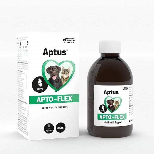 Az Aptus® APTO-FLEX szirup gyógyhatású, oldott formában készült, új típusú, kondroprotektív készítmény. A porc és az inak egészségére ható tradicionális anyagok (glukozamin szulfát, kondroitin szulfát, MSM) ideális kombinációja hatékony hialuronsavval és kollagénnel került kiegészítésre.Az Aptus® APTO-FLEX szirup a nagytestű, sportoló, elhízott, vagy idősebb kutyáknak, valamint a gyors növekedésű fajták kölyökkutyáinak javasolt. Az ízületi porc és inak táplálására, védelmére és regenerálására, a mozgásképesség javítására, az ízületi gyulladás megelőzésére kifejlesztett porcerősítő oldat.Az Aptus® APTO-FLEX szirup az ortopéd sebészeti beavatkozások, ízületi diszpláziák, oszteoartritisz, ortopéd eredetű fájdalom esetén könnyíti és gyorsítja a gyógyulást, könnyíti az ízületek mozgékonyságát, lassítja az artrózis folyamatát.Összetétele (100ml tartalma):- nátrium hyaluronát 140mg - glukozamin szulfát 800mg- kondroitin szulfát 400mg- tőzegáfonya- hidrolizált kollagén 14.000 mg- MSM (metil-szulfonil-metán) 1000mgAdagolása: